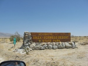 On Tuesday April 22nd we took a day trip out to Anza-Borrego. It was near the end of wildflower season, but we did see a few. We spent some time in the visitor’s center and the cactus garden. From the visitor’s center we followed a self guided tour down “”erosion road””. It was fun to learn a little bit more about the geography of the desert. It’s amazing how the bland desert can get some more character when you know what you are looking at. We even got to try our hand at a little bit of (mild) off-roading. There a wash that you follow to get to the best overlook in the park, Font’s Point. It was marked and the park service encourages you to go if you are in a 4×4, which we were. It was such a mild case of off roading that we never even put the Kia into four wheel drive. The overlook was amazing, and the pictures don’t do it justice. After visiting Anza Borrego we couldn’t resist a side trip to Julian. Julian is a little town that was once a mining community and is now making it’s money by being scenic and mining the tourists. Their claim to fame is their apple pie, yum!! AJ was great. By the time we were eating dinner he was ready to be held though. That was his limit for spending time in a car seat and/or stroller. So, we passed him off and lingered made sure he got his minimum daily cuddles. Check here for all our pictures, I’ve included my two favorites on this page.