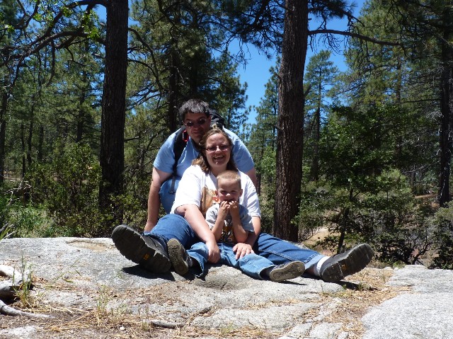 A couple of years ago at a village festival we got a little map that shows us all the trails in the San Bernardino Mountain. This last Saturday we did the last of the easy hikes: Indian Rock Trail. The trail is also known as the Metate Trail and is just off the backside of Hwy. 173. Getting to the trail head is interesting. Once you get past the backside of Lake Arrowhead you will find yourself in the depth of San Bernardino Forest. You know you are close to the trail head when you see a sign that says “pavement ends in one mile.” If the pavement does end, you went too far or fell off a cliff, either way it isn’t a good thing, be careful. (and for every-one’s sake don’t attempt the drive in the winter). Despite the curvy road, you will be rewarded with outstanding views of orange rocks and sagebrush.