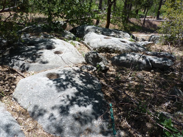 The trail starts just behind the Rock Camp Station and is only .5 miles one way. You will know you have reached the metates (grinding holes) when you see a little monument. If you walk up the hill you will see them, pretty much every rock beyond that monument has one. They were used by the ancient Serrano Indians (the ones that now own San Manuel Casino). No one knows exactly how old they are, but they are hundreds if not thousands of years old. They were used to ground down acorns for food. Walking the trail you can tell why those first people picked the spot for their summer camps. There is plenty of flat ground, lots of plants to forage, and an abundance of water.