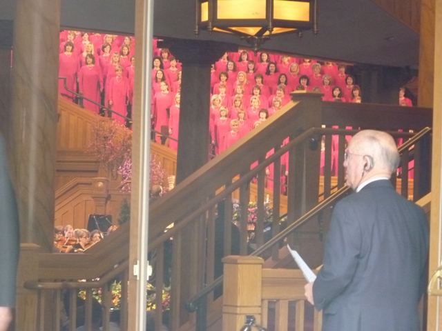 Even so I had hardly gotten inside the gate when a senior missionary came up to us and asked if we were going to see the choir. I knew by his tone of voice that he was concerned that we were going to attempt to sneak AJ in, but having already looked at the website we knew he wasn’t allowed in. Quickly dispelling the senior missionaries’ concern, we told him that we were there to see the choir, but that only Denise would be going in.