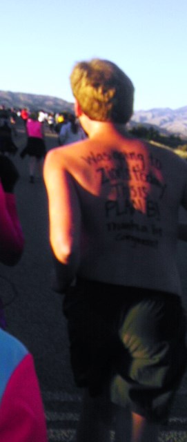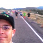 I was first!! On the first bus… The beginning of the race can be summed up into one word: cold! I have been training all summer long. My training had consisted of really early running, and even though it was what I would call brisk on some days, I was not ready for the Utah morning air. I figured it was going to be a little cold so I brought a long sleeve shirt. The plan was to put it in my retrieval bag and pick it up after the race. I was not very organized in this aspect.