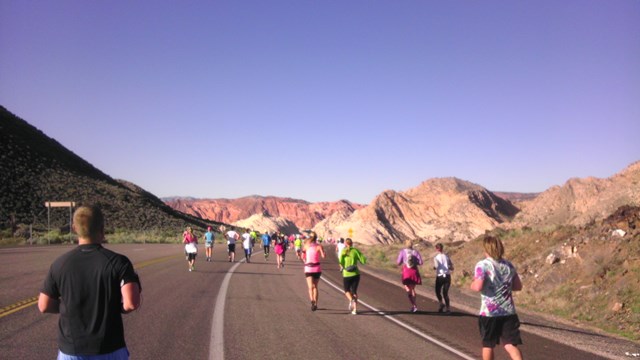 The town of Veyo is very small, I don’t know the exact population but I can’t imagine it being that big. Despite it’s small size and it not very fun incline I have to hand it to the town of Veyo for uplifting my spirits. Since most of the race is on a solitary road there were not many spectators during the race, but as soon as we reached Veyo it was obvious the whole town comes out for this event. I was pacing a 5 hour race, so I was obviously in the back half of the race, but the people were still there. They had music blaring, adults were ringing bells, kids were giving out high-fives, and a little old lady held out a chocolate chip cookie for me. It was great. I really feel that it was the people of the town of Veyo that helped me get up those inclines.