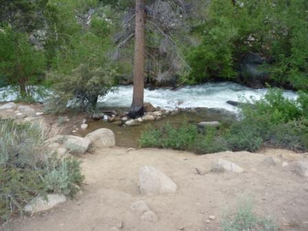 Our first day concentrated on getting to the Sierras. Our destination for this trip was the Inyo National Forest, specifically it was the John Muir Wilderness area. After about 5 hours of driving from Crestline we arrived at the Bishop Park Campground. It was kind of an interesting drive to me because I live in Crestline which is part of the San Bernardino National Forest and to get to Inyo National Forest we had to drive up the 395 which is basically all desert. It just reminded me how diverse California actually is, it is amazing to me that you can traverse so many different ecological systems in one day’s worth of driving. The Bishop Park Campground was really nice. We were in the group site that came equipped with a fairly large bear box, several fire pits, and a flush toilet (that even had a sink). This was all set next to a beautiful river:
