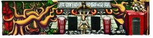 He eventually ended up in Los Angeles, California in 1932. Which just happened to be the year of the Olympics. At that time Olivera St. had fallen on hard times. A movement was going to restore Olivera St. as a historical district. Some business owner got the idea to paint this mural by this famous painter. The idea was to paint a lush tropical garden scene with birds and plants. With all the people coming for the Olympics it would work out great.