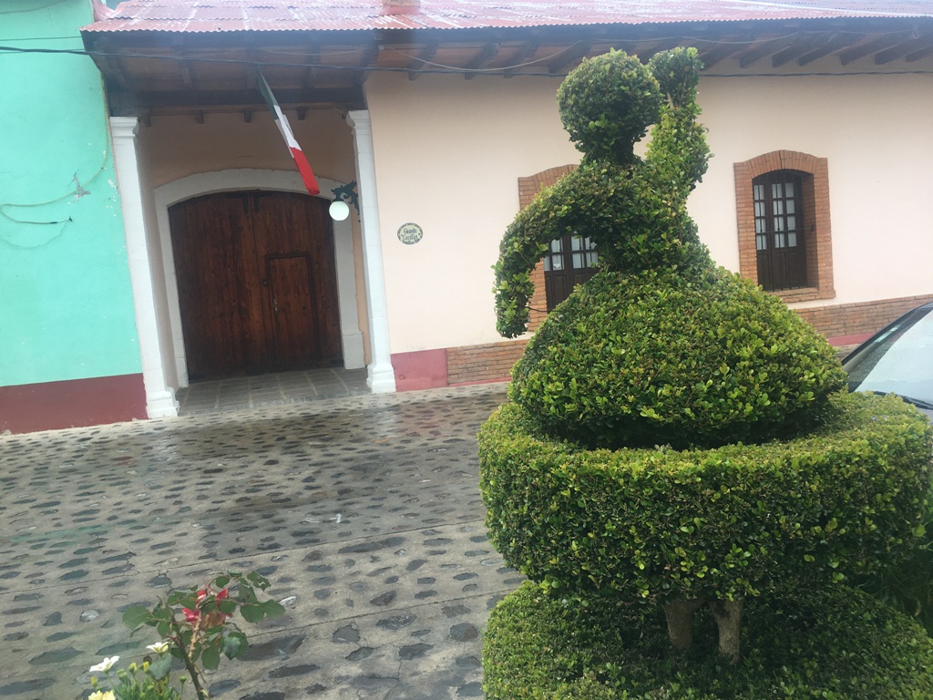 The next town we visited was called Omitlan de Juarez. This town distinguished itself during the French invasion for being a hold out down. Omitlan had a beautiful plaza with hedges shaped into many different things like animals and dancing people. It had a little hilltop church with a little cemetery.