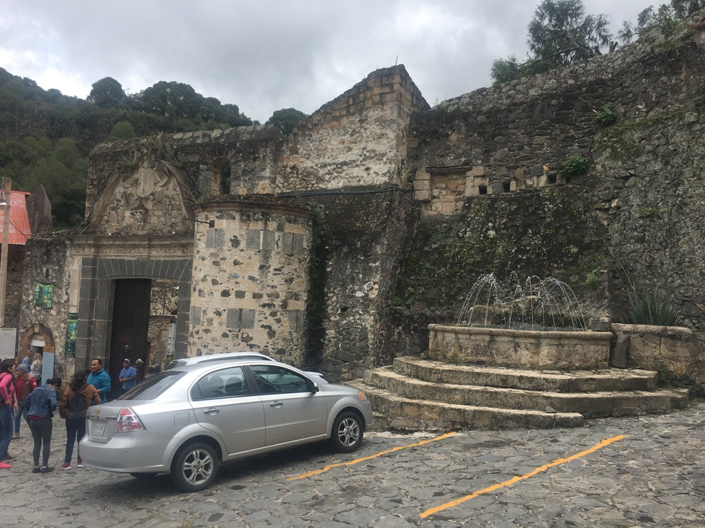 The first town we visited was Mineral Del Chico. To get there we had to travel through the Mexican National park of El Chico. It was slightly raining while we went up and there were lots of rivers, streams, and even random waterfalls. Mineral del Chico is an interesting town to visit. It is a Pueblo Magico and so it is very unique. It has a small and has a church, plaza like most Mexican cities, but what sets it apart was that most of the buildings were made out of wood and had slanted roofs. As the name implies it used to be a small mining town and so on the outskirts of town you can see remnants of it’s mining history.