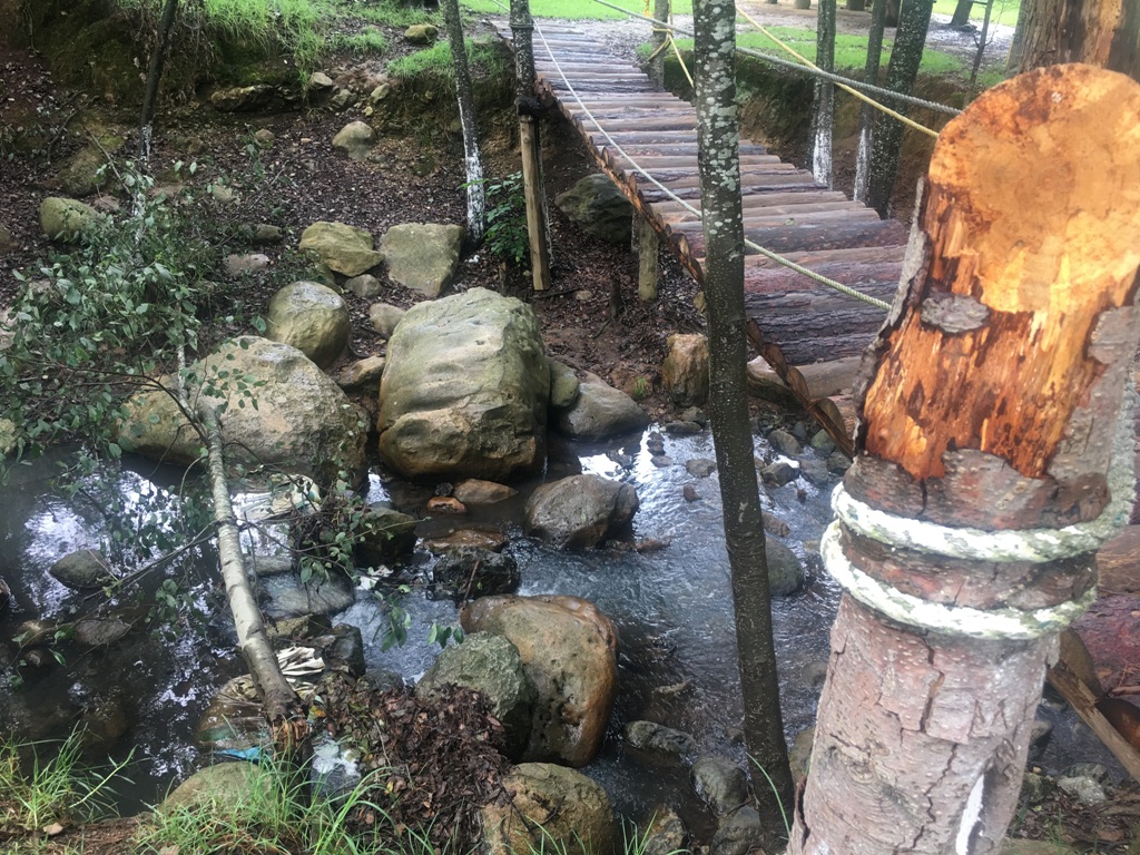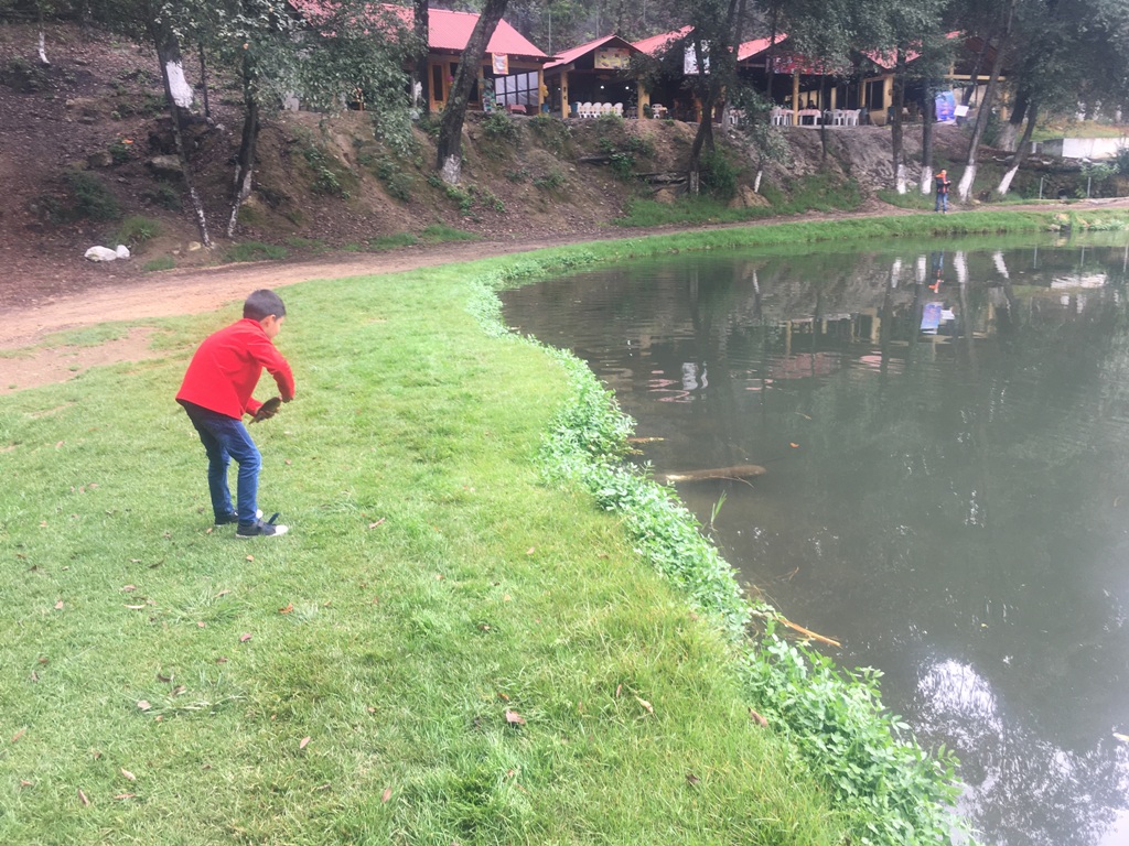 From Omitlan we drove out into the forest some more on a very bumpy road next to a rock quarry and ended up at Zembo lake. Zembo lake is a very small lake, I would almost call it a pond, but you can go fishing there and there are these little restaurants that will cook your fish on the spot. It cost $30 mxn a day to camp or just visit. While we were there a little kid with a little bit of string and a worm showed us how to catch a carp. I enjoyed walking along the stream that fed the lake.