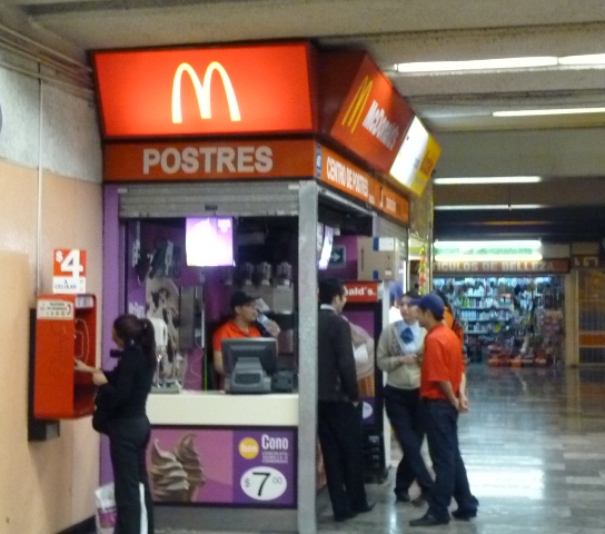 I remember when I was about 12 years old the first McDonalds came to Mexico City. It was in Polanco (rich part of the city). Back then McDonalds was a novelty and only rich people went there. Now of course there are McDonalds all over the place in Mexico City and everyone goes there. Seeing this little McDonalds inside the subway station however made me laugh. I haven’t been to every subway station in the USA, but I bet you wont find this in the USA.