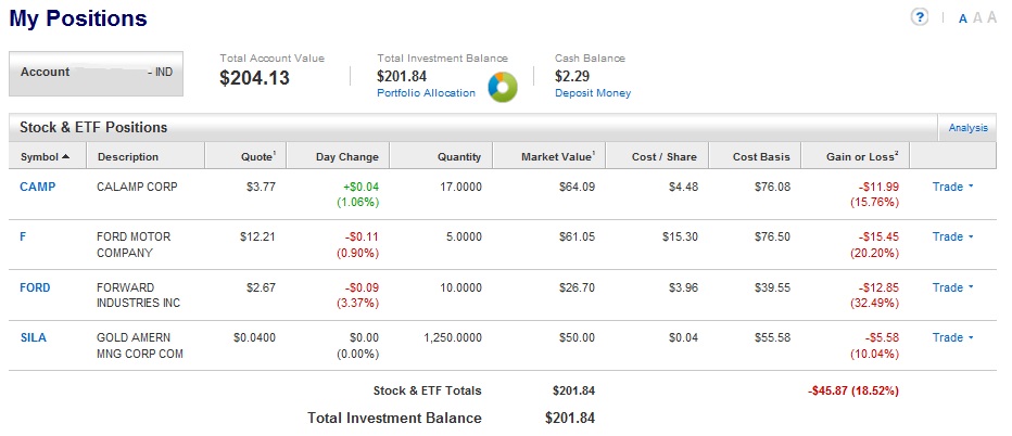Here is my stock portfolio (I erased the account number for obvious reasons):