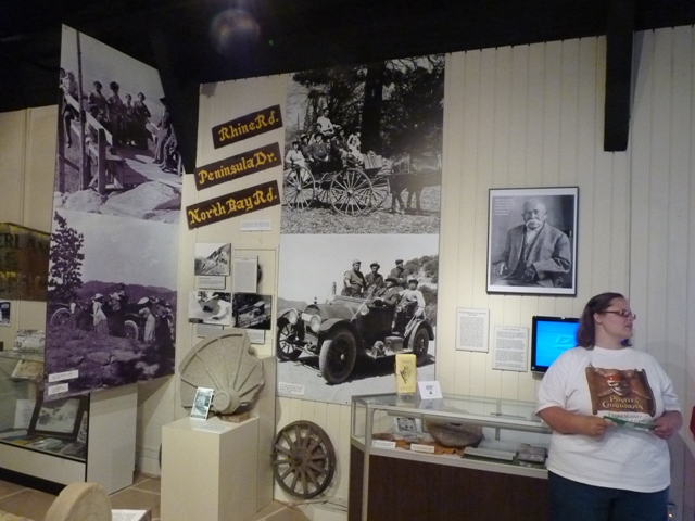 To get there follow the little museum signs from the village. Go west (right) on Hwy. 189 toward Blue Jay, 1.4 mi. Turn right on North Bay Rd. (at the movie theatre). Go 1.7 mi. to Peninsula Dr. (at the fire station). Turn left and drive .4 mi. The museum is on the right at Rhine Rd. The address is 27176 Peninsula Drive, Lake Arrowhead, CA.